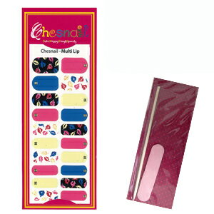 商品詳細 商品名 Chesnail(チェスネイル) サイズ (約)190x75x3(mm) 重量 (約)14g 内容量 20枚入り/1シート(2回分) 種類 マルチリップ(Multi Lip):デニムコーデにも◎カラフルなキスマークがいっぱい! 材質 ● 本体:フィルム台紙:PET、シール:PVC ● 梱包:台紙:紙、ビニール袋:PP 生産国 韓国 発売元 ミュー株式会社 商品説明 ★